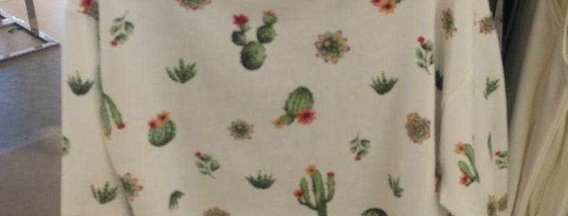 I saved this look for last, because I had to. I already have an aversion to floral prints, and what I call “pastel vomit”. Well, apparently the new thing is cacti. You have a cactus? You have cacti? well put it on a cropped sweat. Off-shade cacti on an off-shade shirt. This hurts me. Every time someone buys this, I die a teeny-tiny bit inside. If you think this looks good: you are going to hate photos of yourself in two years.